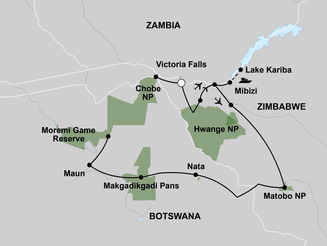 ENCOUNTER THE HIGHLIGHTS OF BOTSWANA AND ZIMBABWE IN 15 DAYS.